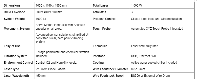 Meltio M600 Spec Sheet:
